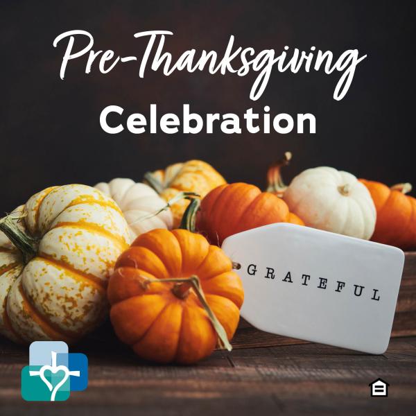 Residents and family members are invited to join us for a Pre-Thanksgiving Celebration. Come join us as we gather and give thanks for our blessings and enjoy food and fellowship with one another!